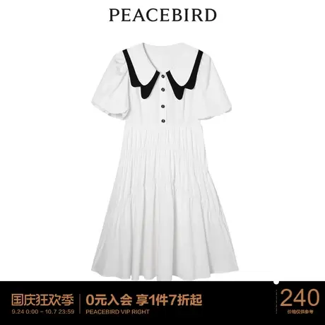 #太平鸟 2023年春季新款法式方领连衣裙女士高腰显瘦双排扣a字裙
