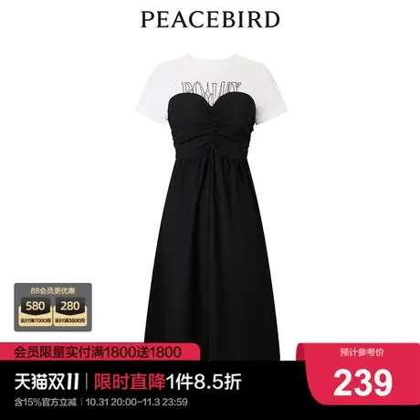 【张婧仪同款】太平鸟女装2025秋季新款马夹拼接连衣裙A1FAE3257
