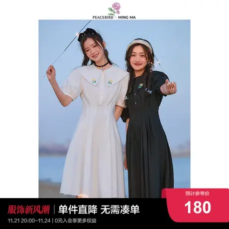【MING MA合作系列】太平鸟蔷薇少女收腰连衣裙2024夏季新款长裙