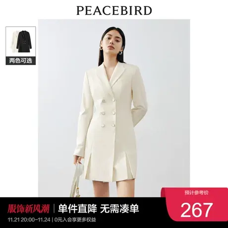 太平鸟 2023年秋季纯色气质收腰西装裙女士长袖a字连衣裙奥莱